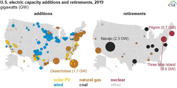 New electric generating capacity in 2019 will come from renewables and natural gas